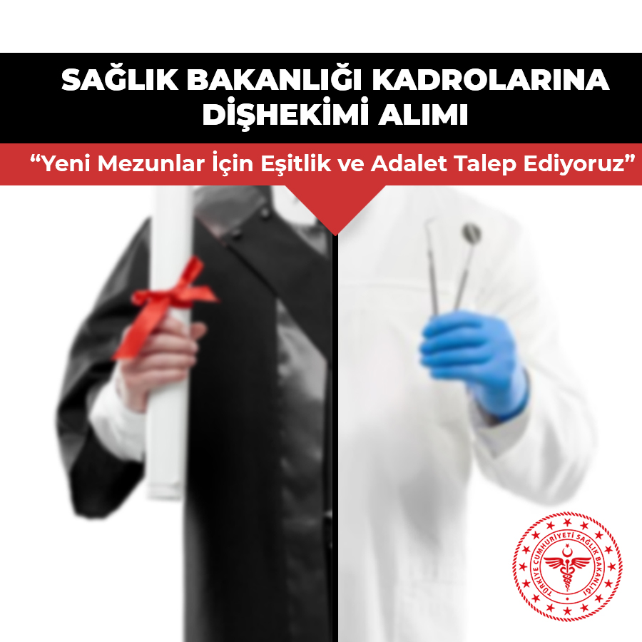 Birliğimiz tarafından Sağlık Bakanlığı Yönetim hizmetleri Genel Müdürlüğü'ne gönderilen 01.07.2020 tarihli yazı ile Sağlık Bakanlığı ve diğer kamu kurum ve kuruluşlarına alınacak 220 dişhekimi için 14 Temmuz’da çekilecek kuraya yeni mezun meslektaşlarımızın da katılabilmesi için başvuru tarihinin uzatılması ya da kura tarihine kadar mezun olacakların da başvurmasına olanak sağlanmasının kamu görevine girmede eşitlik, adalet ve hakkaniyete uygun olacağı ifade edilmiştir.