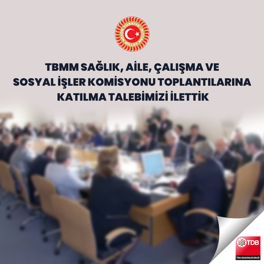 Türk Dişhekimleri Birliği olarak ağız diş sağlığı ve dişhekimliği hizmetleri açısından görülen sorunların yer aldığı değerlendirmelerimizi sunmak ve Komisyon çalışmalarına diğer diğer sağlık meslek birlikleri ile bizzat birer temsilci ile katılarak katkı sunma talebimiz 12.08.2020 tarihli yazımızla TBMM Sağlık, Aile, Çalışma ve Sosyal İşler Komisyonu Başkanı Prof. Dr. Recep Akdağ’a iletilmiştir.